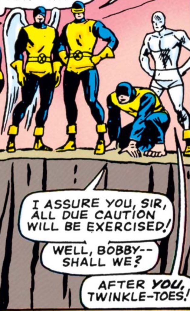 Not much to see here either. Iceman and Mimic snipe at each other a lot, but then, Mimic is an incredible jerk in the Silver Age, so you can’t really blame him.